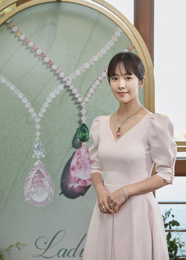 ◆골든듀 '모닝듀' 20주년 기념 리미티드 에디션 메인 제품인 ‘컬러 오브 듀’ 목걸이를 착용한 배우 한지민.