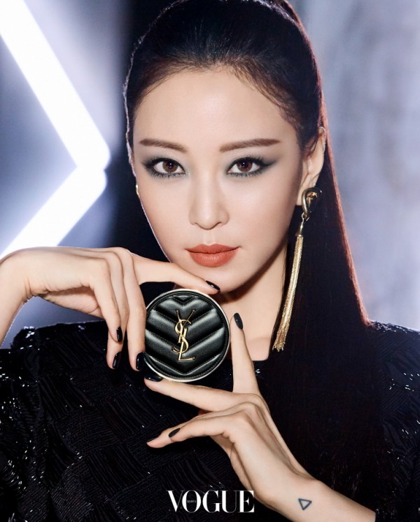 한예슬이 화보 속에서 선보인 쿠션은 입생로랑 뷰티의 신제품 NEW 엉크르 드 뽀 쿠션이다. 특히 이 제품은 5년 연속 백화점 NO.1 럭셔리 쿠션의 자리를 지키고 있는 베스트 셀러로서 입생로랑의 시그니처 쉐브론 디자인과 고급스러운 메탈 카산드르 로고가 만난 감각적인 패키지로 재탄생 했다. 더욱 강력해진 지속력과 업그레이드 된 새틴 광채로 빛나는 피부를 표현할 수 있는 것도 장점이다.