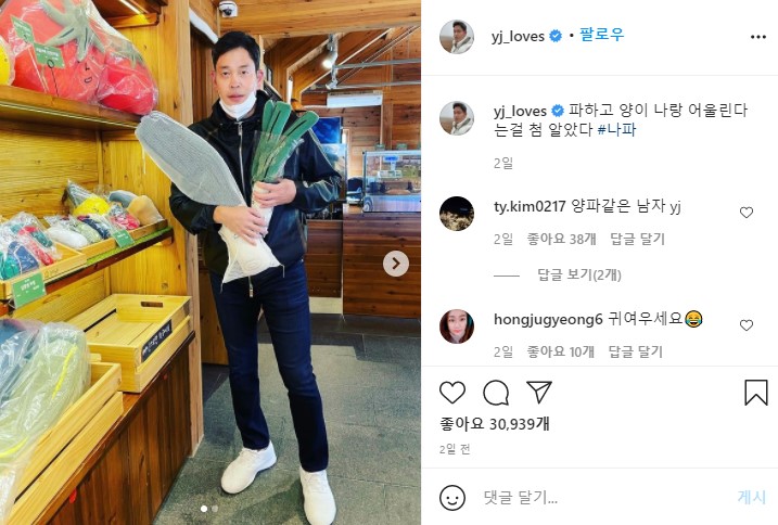 정용진 신세계그룹 부회장이 지난 9일 자신의 인스타그램에 올린 사진이 누리꾼들에게 화제다. 센스 있는 코멘트와 #나파 라는 해시태그와 함께 파 인형을 들고 포즈를 취한 정 부회장은 청바지의 아이콘답게 이번에도 바람막이와 청바지, 흰색 운동화를 착용해 젊고 유연한 패션 감각을 뽐냈다. 이 게시물은 현재 좋아요 3만 개를 넘기며 폭발적인 반응을 얻고 있다.