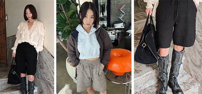 기은세는 아일렛 블라우스와 알파카 블렌디드 니트 쇼츠로 감성적인 무드를 연출하는가 하면, 후디에 니트 쇼츠를 더해 캐주얼한 룩을 완성했다. 뿐만 아니라, 아일렛 블라우스에 모헤어 블렌디드 니트 베스트와 니트 쇼츠로 따라 입고 싶은 가을 룩을 선보였다.