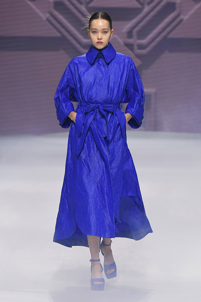 이상봉의 24SS 컬렉션은 한국의 찬란한 문화유산인 단청을 이 시대의 새로운 해석으로 품어낸다. 단청의 직선과 곡선이 유기적으로 결합해 구름, 달, 해, 별, 꽃과 같은 자연을 상징하는 패턴과 형상을 만들어낸다.
