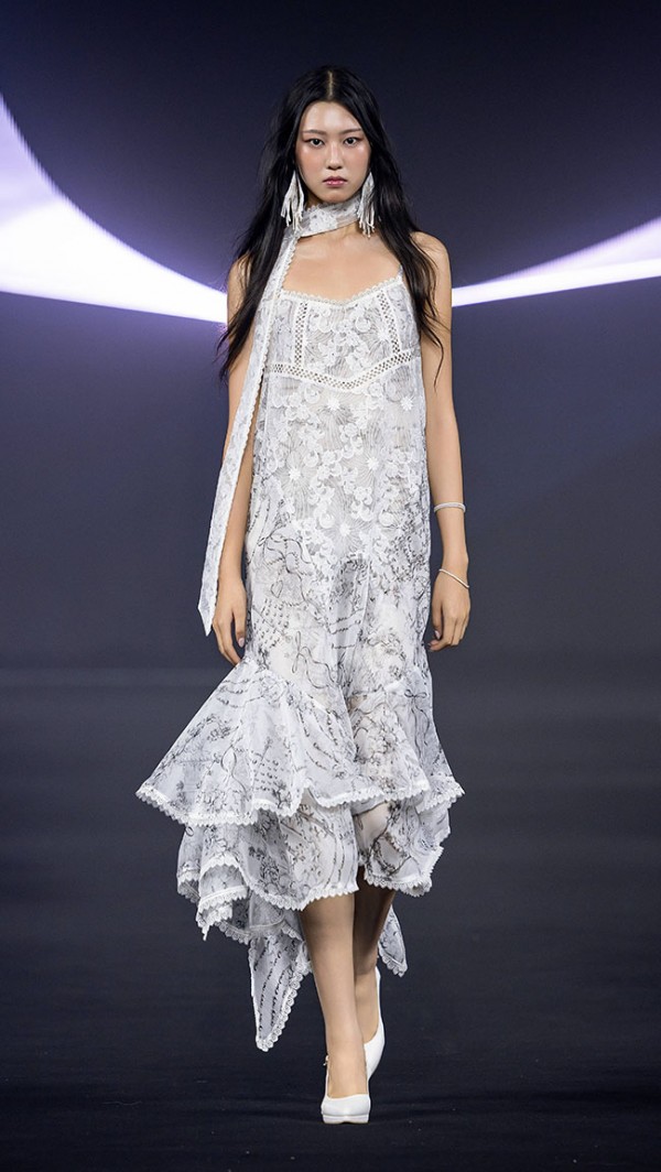26SS DOUCAN 컬렉션은 몽환적이면서도 감정이 깨어있는 상태, 즉 꿈과 현실 사이에서 피어나는 여성성을 표현한다.