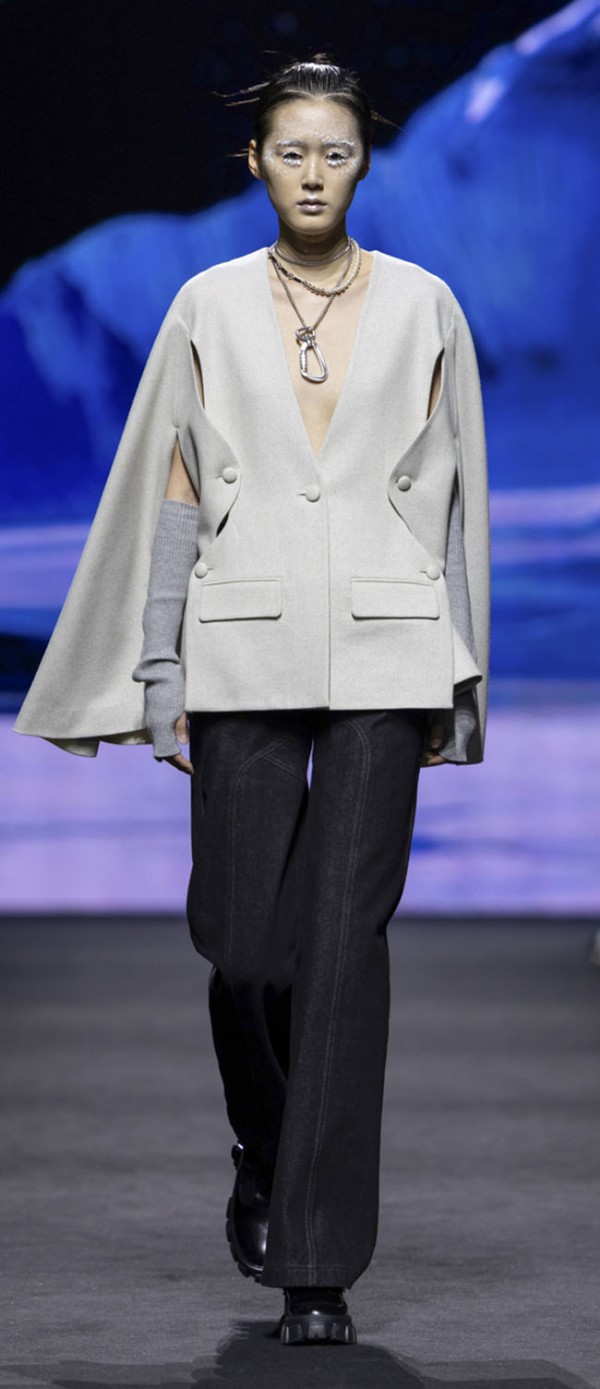전통적인 세르파 복식의 실용성 및 컬러를 현대적으로 재해석하여 아웃도어 활동을 즐기는 현대인을 위한 스타일을 제안하며, 나일론, 폴리에스터와 같은 새로운 기능성 섬유들과 전통적인 자연 소재들을 혼합 사용하여 흥미로운 소재매치를 구성한다.