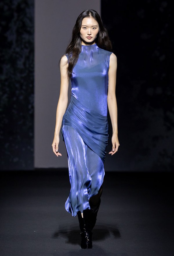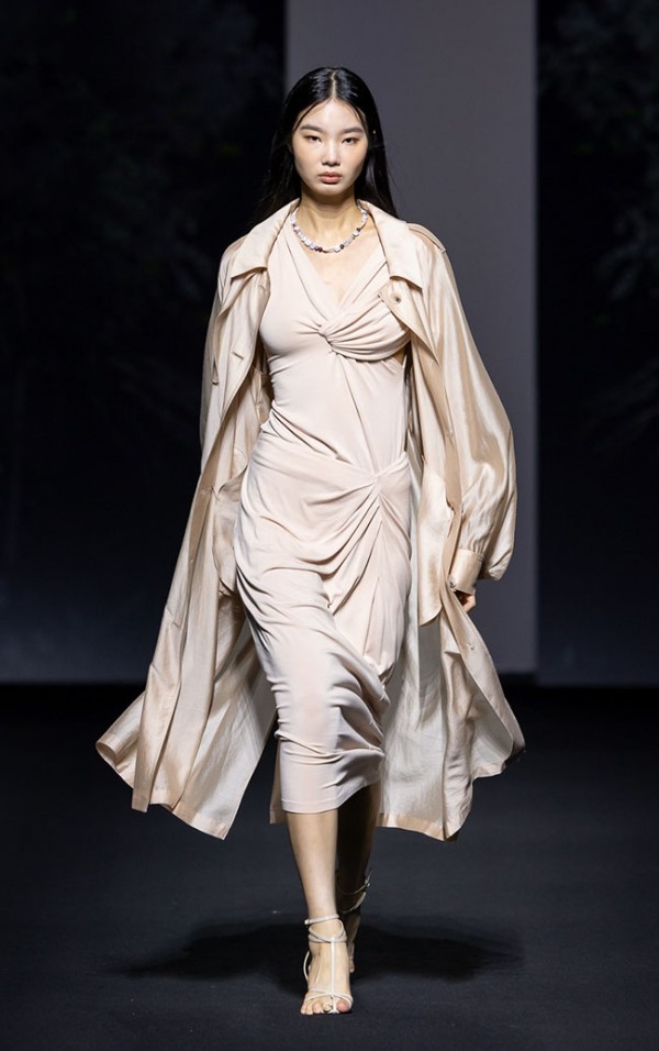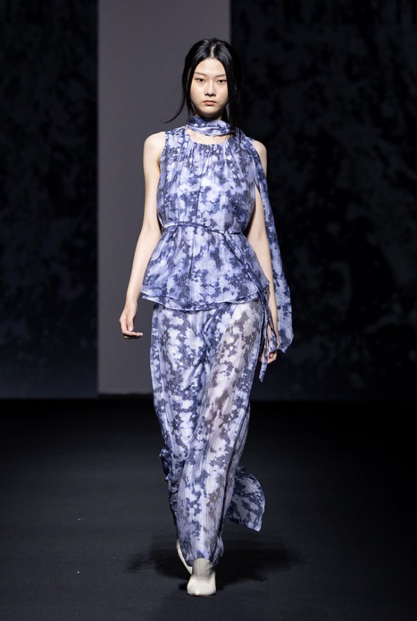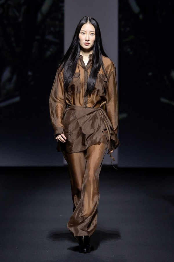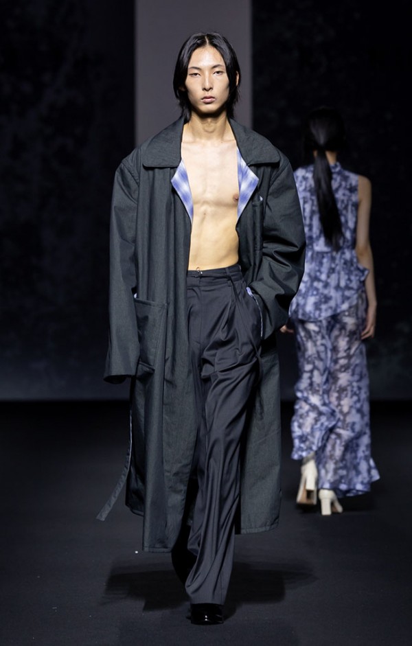 컬렉션에서는 시간의 흐름을 상징하는 다양한 요소가 나타나며, 색상과 소재의 변화, 의상의 형태와 디자인은 모두 시간에 따른 등장과 변화를 상징한다. 곧 사라질 운명임을 암시하는 듯한 흐릿한 프린트나 반투명한 소재, 휘발성을 상징하는 요소들은 소멸의 이미지를 강조하고, 불완전한 듯한 디자인과 공허한 공간은 부재의 의미를 전달한다. 이는 존재와 정체성, 그리고 일시적인 아름다움을 반영하며, 패션의 본질적 허무함과 그럼에도 불구하고 끊임없이 갈구하며 순간을 즐기는 태도를 새롭게 조명한다.
