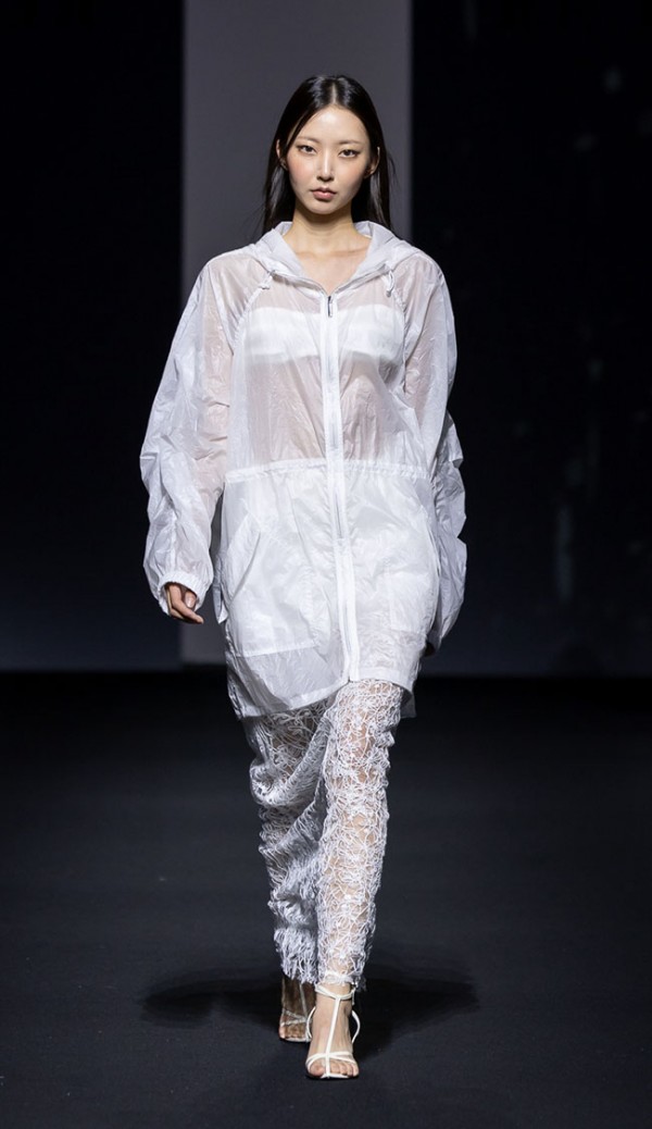 리이의 25 S/S 'This Appearance; Disappearance'는 패션의 임시적 형성과 소멸, 존재와 사라짐을 탐구한다. 유사한 발음이지만 상반된 의미를 가진 단어들을?통해 현재의 화려함이 결국 시간의 흐름 속에서 사소한 이야깃거리에 불과하다는 모순을 드러낸다. 매 시즌 나타나는 트렌드와 스타일은 순간적 불꽃처럼 화려하지만 곧 사라지며 망각되기 마련이다. 시간의 경과와 일시적 흔적을 시각적으로 재해석하여, 등장과 소멸, 존재와 부재의 덧없음을 표현한다.