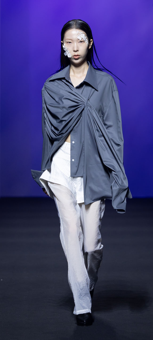 The 25ss season is designed to make familiar outfits look unfamiliar. Items such as customized jackets, hoodies, and trench coats that are familiar to the public want to make the existing outfits look new by disassembling, transforming, and combining ARTS DE BASE-specific draping, asymmetrical details.