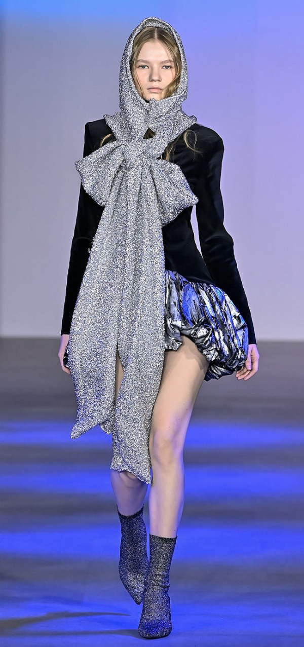 조형적으로는 원거리에서 바라본 붉은 구름과 푸른 구름이 용액이 섞이는 듯한 형상, 근거리에서 바라본 조각들의 날카롭고, 거친 표면이 소재와 표현 기법으로 나타날 예정이다. 다른 이질적인 두 요소가 용해되고 있는 것 같은 형상은 서로 다른 원단의 결합으로, 거친 충돌의 표면과 흉터는 실크스크린 기법, 인그레이빙, 레이저컷과 3D 프린팅 의류 및 오브제를 사용해 표현했다. 구름이 부풀고 퍼져나가는 실루엣은 가죽 물성형 기법과 메모리 폼 기법, 별무리의 빛은 LED Weaving 기법으로 연출했다.