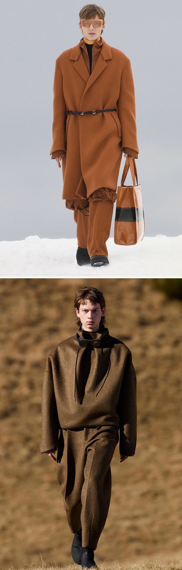 특히, 경량 또는 부드럽고 비구조적인 형태의 울과 펠트소재가 남성복 오피스룩에 다양하게 활용된다.