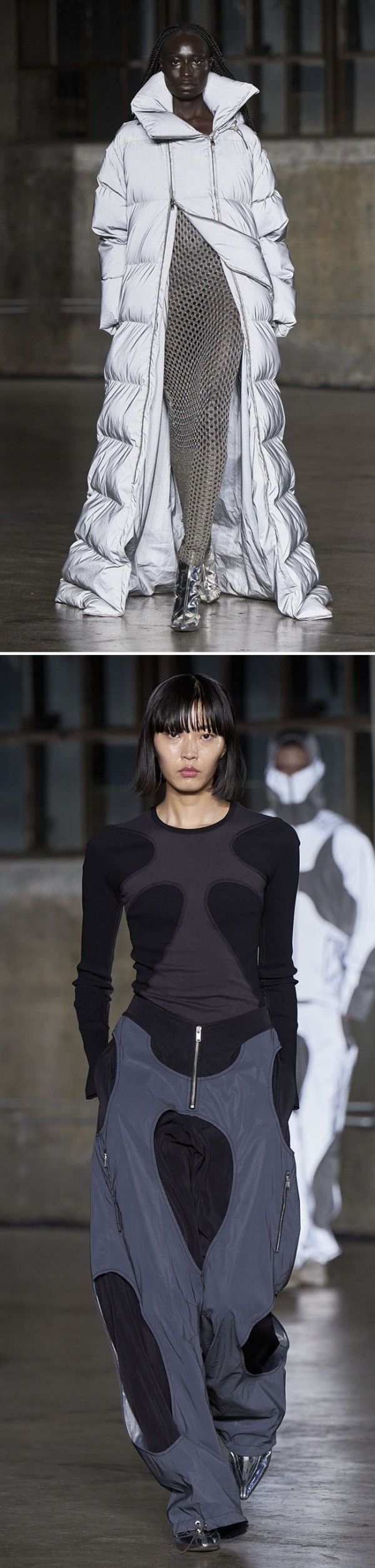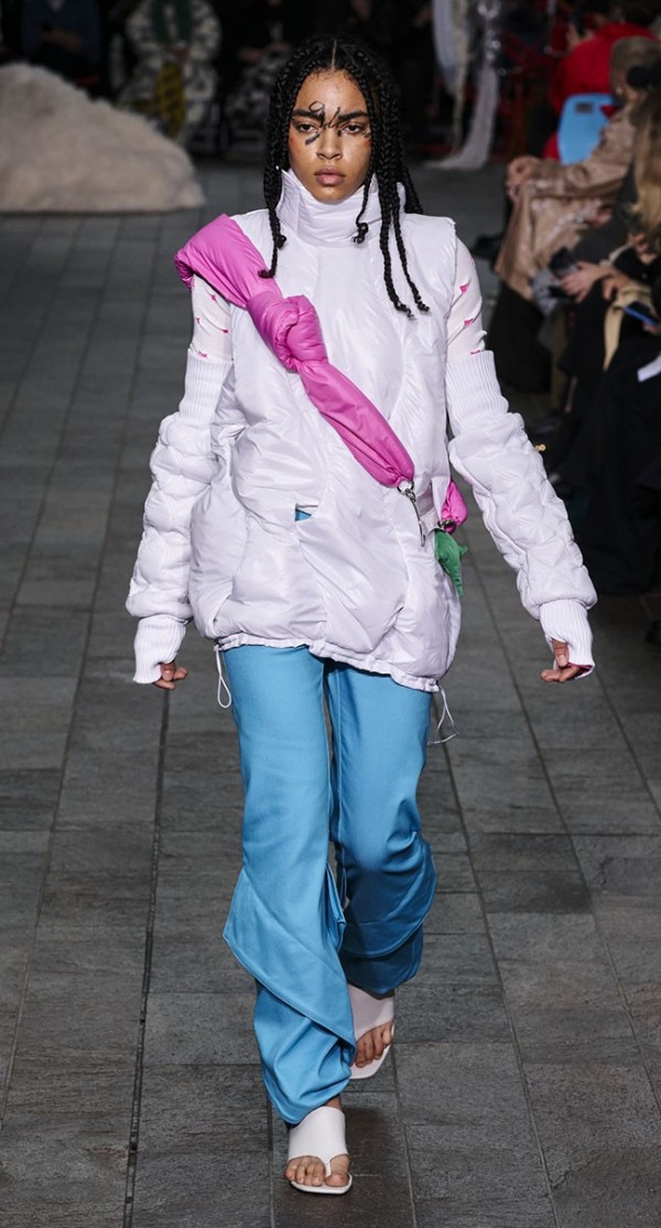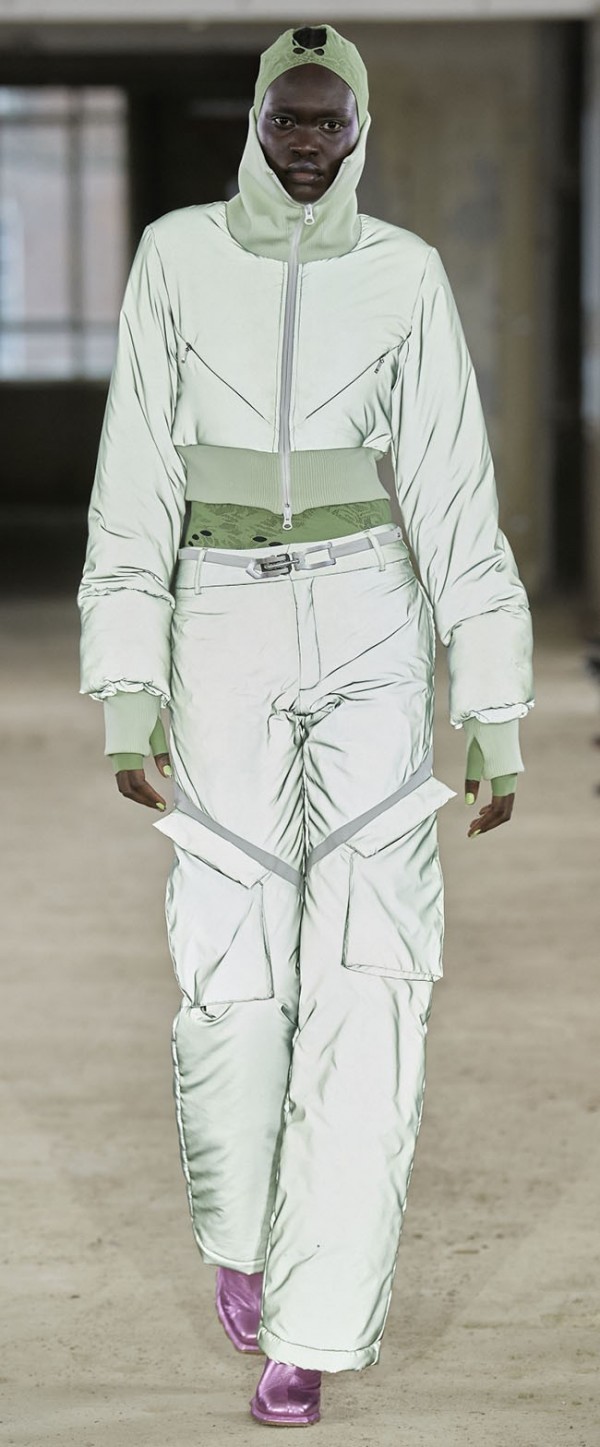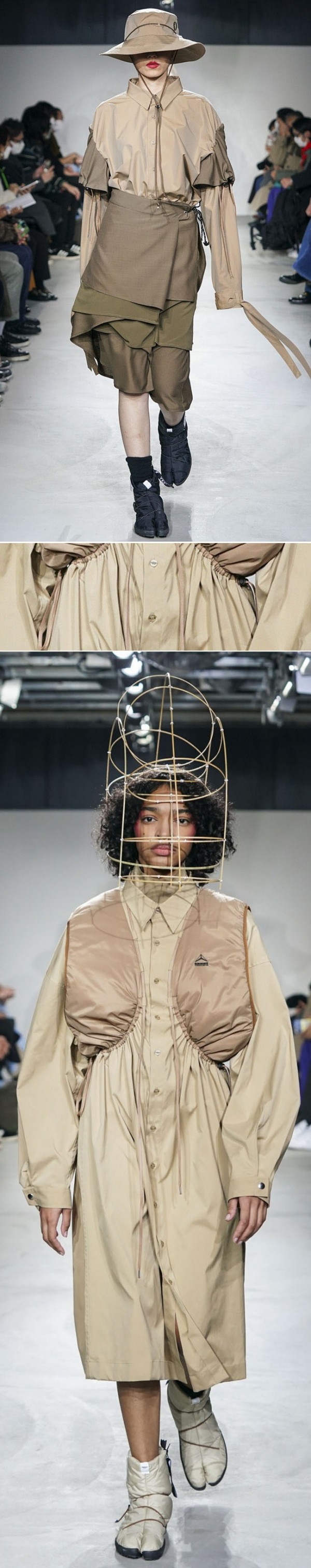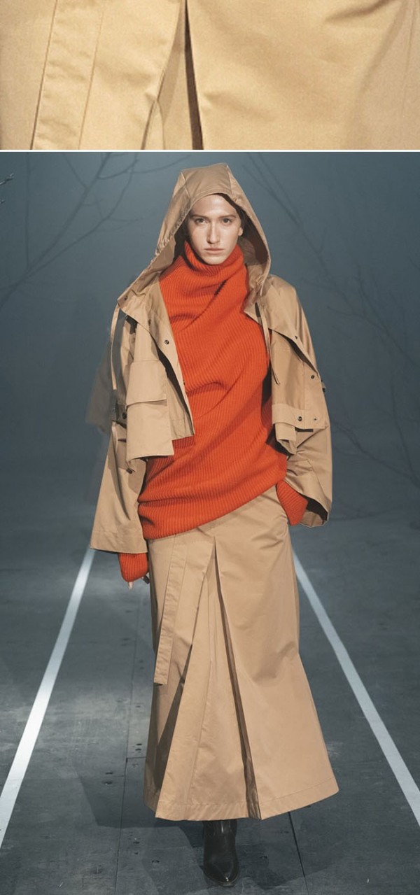오피스룩, 페미닌룩, 캐주얼룩, 아웃도어룩 등을 아우르며, 실용적인 아웃도어 소재들이 다양하게 활용되고 있다.