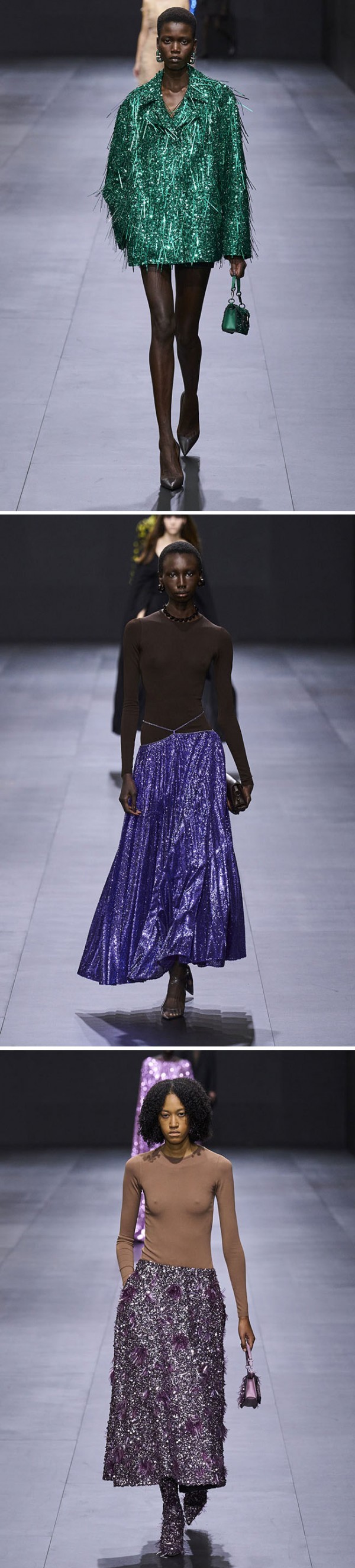파티룩을 위한 블링블링한 소재들이 런웨이에 대거 등장했으며, 이러한 소재들은 S/S시즌을 위한 라이트한 느낌으로 실용성을 더해 홀리데이를 위한 특별한룩이 아닌 일상속 유니크한룩에도 적극 활용되고 있다.