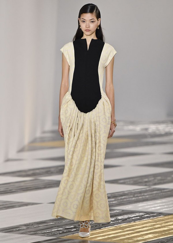 드레스의 경우 고전 복식의 실루엣을 과감하게 차용한 스테이트먼트 스타일이 중심을 이루었다. 실루엣은 과장된 트라페즈 실루엣부터 유연한 시스 실루엣까지 전개됐는데 평면과 입체, 구조적인 형태감과 유연함의 대조를 통해 추상적인 뉘앙스를 더한 것이 특징적이다.