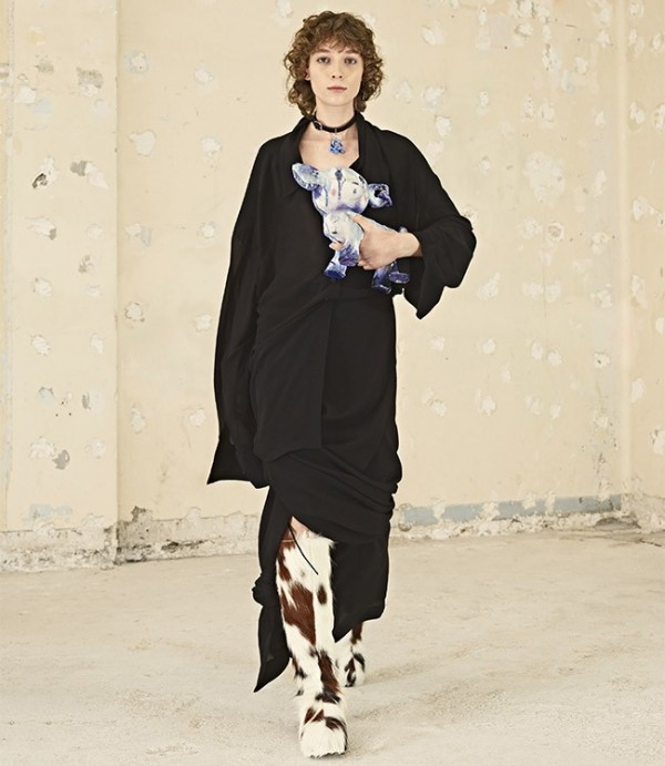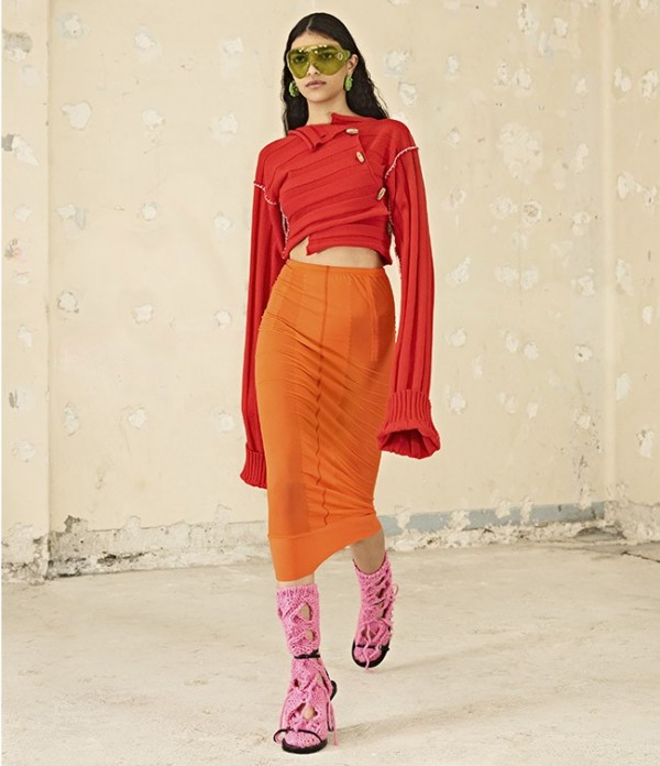 슈즈로는 웨이더 부츠, 나막신 모양의 뮬, 청키한 니트 삭스와 매치와 스트랩 샌들 등을 제안.