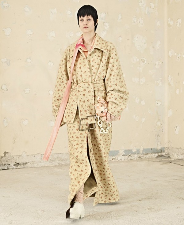 옆으로 돌아간 오프닝과 어긋나게 채운 단추, 한쪽 어깨를 드러내는 스타일링, 멀티 레이어링 등으로 집안에서의 자유롭고 헝클어진 분위기를 의도적으로 주입.