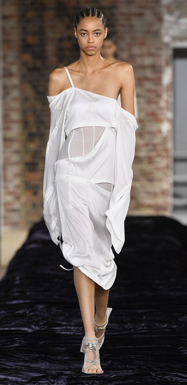 지난 시즌의 듀벳 드레싱과는 대조되는 섹시한 스타일. 란제리 드레싱과 데이웨어의 절충을 바탕으로 전개되는데 요즘의 느낌을 더해 쿨하게 마무리. 란제리에서 가져온 요소는 디테일적으로 활용되며 해체주의적이거나 업사이클링한 듯이 표현되는 것이 특징.