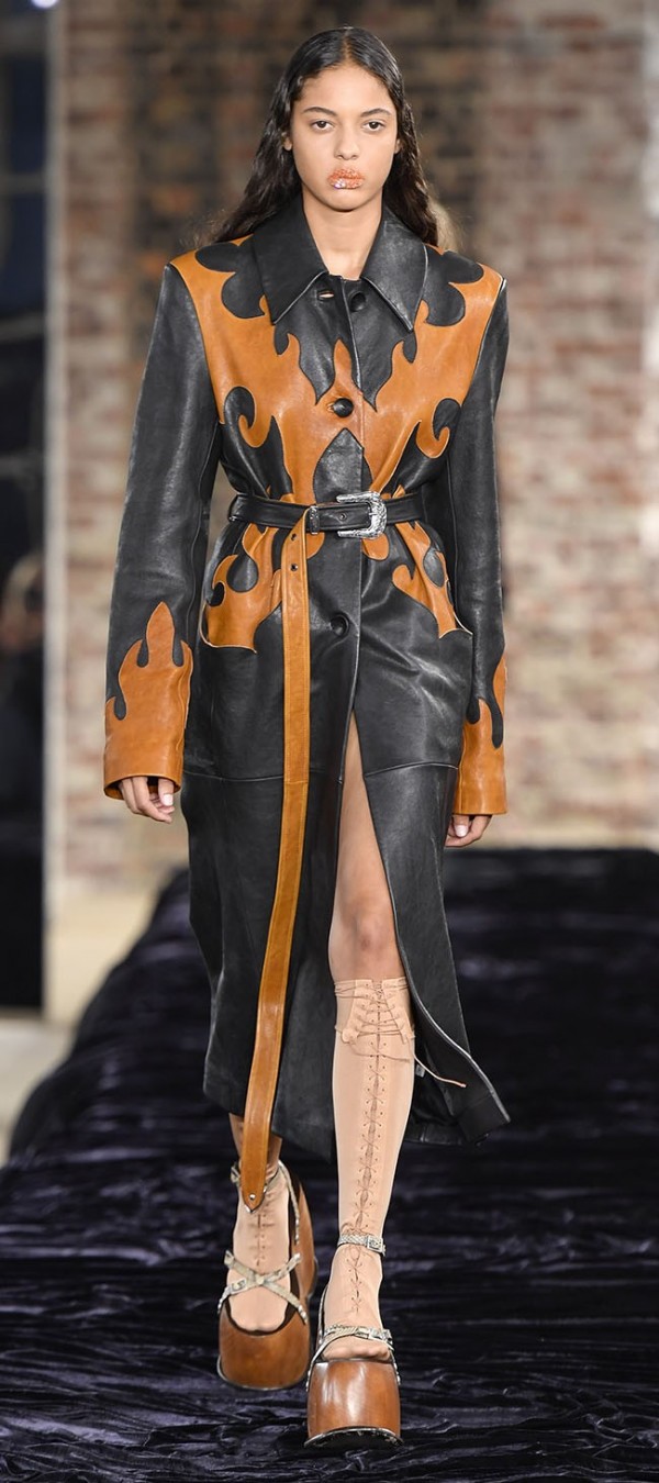 아우터는 발마칸 코트와 바이커 재킷이 대표적. 보텀은 슬림 팬츠, 호블 스커트, 미니 스커트 등이 제안되며 레기룩을 연출.