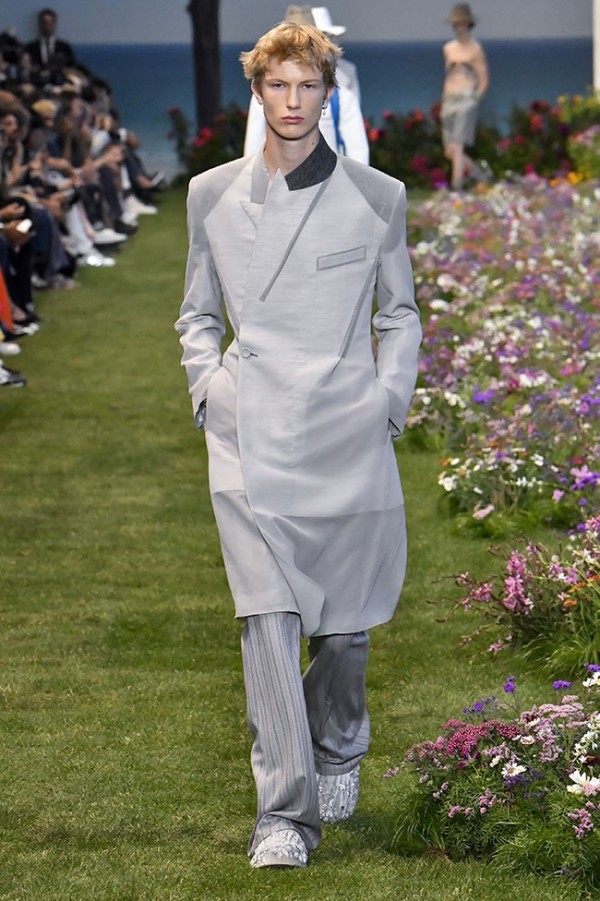 디올의 혁명적인 뉴룩에서 영감을 받은 우아한 테일러링과 원예와 하이킹의 영향을 기술적 아우터 형태로 혼합한 것이 이번 컬렉션의 출발점.