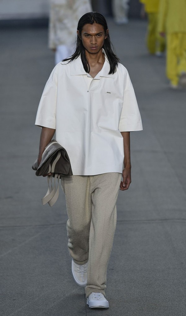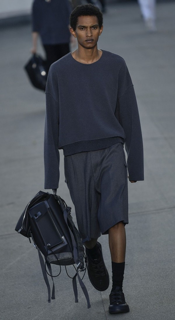 이번 시즌을 위해 그는 새로운 레저 웨어 실루엇을 개발. 이 실루엣은 가벼운 쉐입과 기술적인 마감으로 완성.