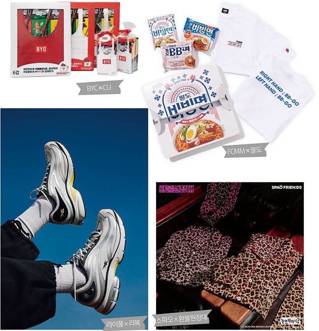 최근 패션 브랜드의 협업은 식품업계, 캐릭터, 학교, 아티스트, 맛집, 카페 등 다양한 업종간의 이색 조합으로 눈길을 모은다. MZ 세대를 타깃으로 하는 캐주얼 브랜드는 취향을 중시하고 남들과는 다른 이색적인 경험에 가치를 부여하는 1020세대에게 재미와 색다른 경험을 제공하기 위해 콜라보를 기획한다.