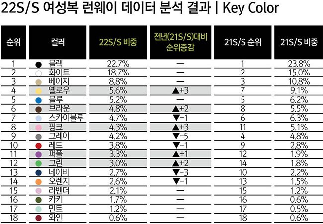 ▶22S/S 여성복 런웨이 데이터 분석 결과-Basic Color