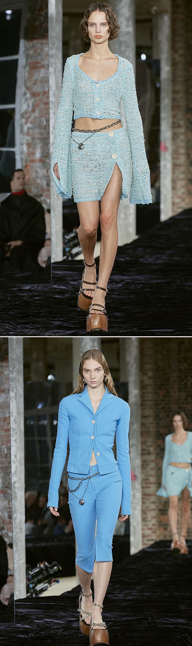 캐주얼을 대표하는 블루 컬러가 전년대비 비중이 증가(+1.9%)하며, 주요 컬러로 떠올랐다. 내추럴한 데님 블루 뿐 아니라 파티를 위한 브라이트한 블루가 다양하게 등장했으며, 강렬한 브라이트 컬러 콤비네이션 또는 올 블루 스타일링이 핫하게 보여진다.