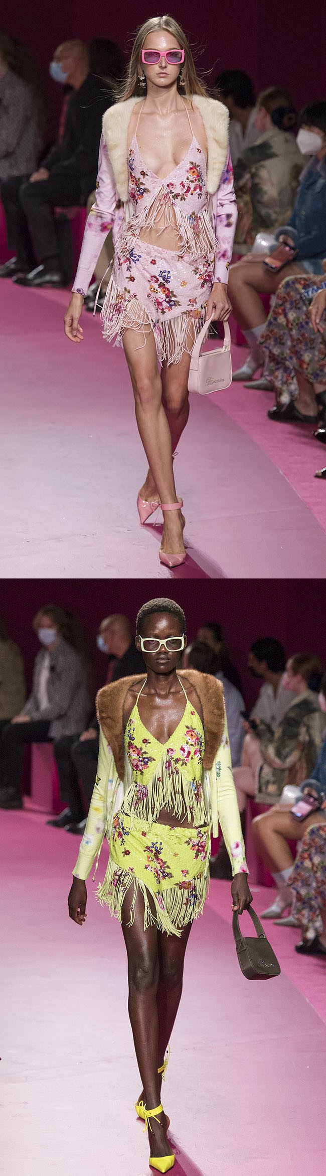 90년대 바디컨셔스 스타일이 다양하게 등장했으며, 스판덱스가 핵심소재로 떠올랐다. 전년대비 비증 증감률 +50.8%로 시퀸/글리터 다음으로 높은 수치를 나타내며, 22S/S 시즌 핵심 트렌드 소재로 떠올랐다. 특히 실용적인 파티웨어를 위한 뉴 레깅스 아이템이 주목받으면서 스판덱스 소재가 더욱 중요해졌다.