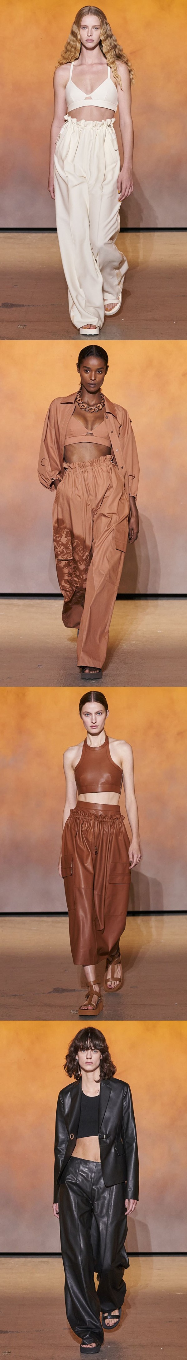 아웃도어 및 2000년대 스타일을 대표하는 카고팬츠가 여성복에서도 전년대비 비중 증감률 +34.6%를 기록하며 핵심아이템으로 떠오른다. 조거, 와이드, 부츠컷, 버뮤다 등 다양한 스타일로 제안되며, 다양한 카코 포켓 플레이로 아이템에 재미를 더한다.