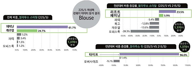 블라우스 스타일 비중 1위 페미닌 61.7%
