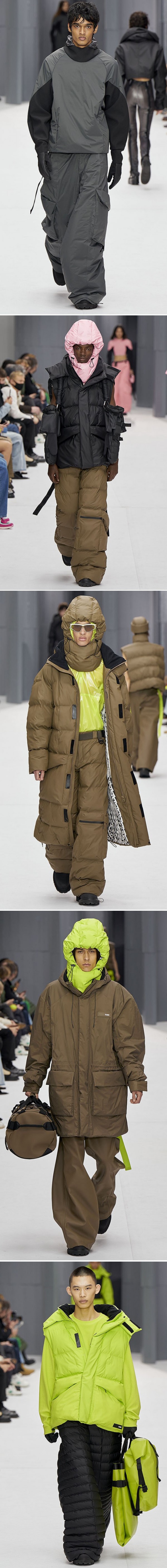 이번 시즌 기능성에 포커스 된 퓨처리스틱한 아웃도어 스타일들이 더욱 강세를 보였다.