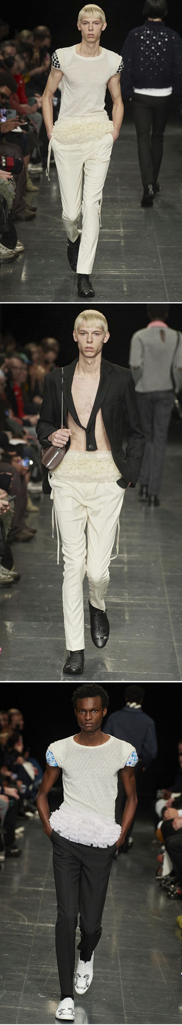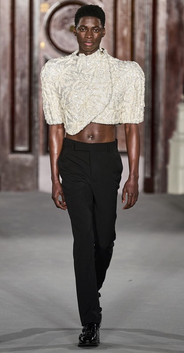 여성복의 전유물로만 여겨지던 셔링, 러플 디테일과 레이시한 소재, 핏 & 플레어 실루엣 등이 남성복에서도 다양하게 활용된다.