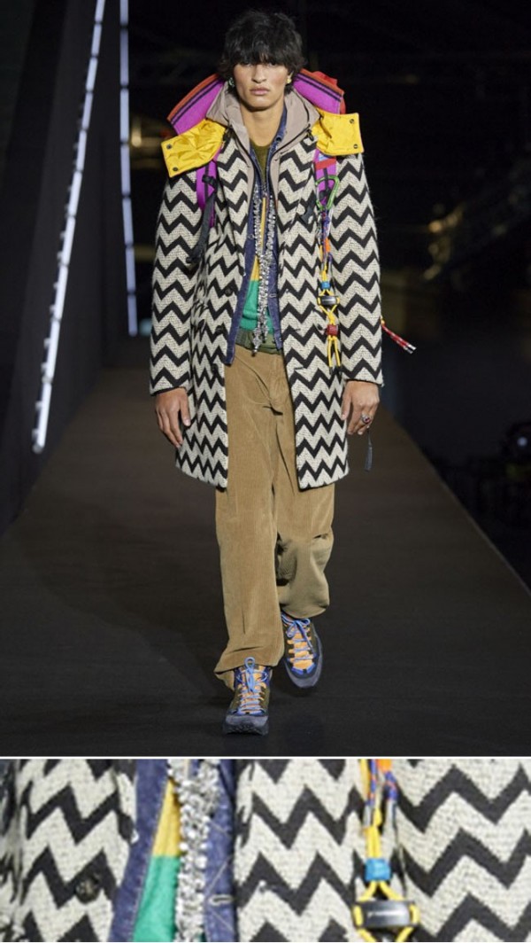 도트, 지그재그 패턴들이 전년대비 비중이 증가했으며, 전형적인 스타일 보다는 다양한 모티브와 믹스되어 표현된 기하학 패턴 플레이가 강세를 보이고 있다.