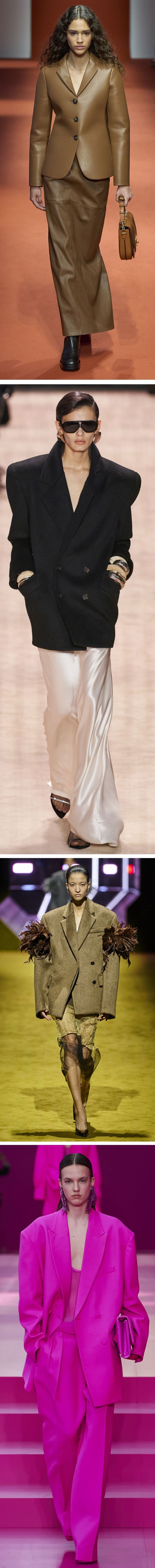 포멀한 싱글브레스티드, 더블드레스티드 재킷은 클래식한 디자인을 유지하면서도 넓은 어깨와 오버사이즈 핏 등으로 변화를 주어 트렌디하게 제안된다.